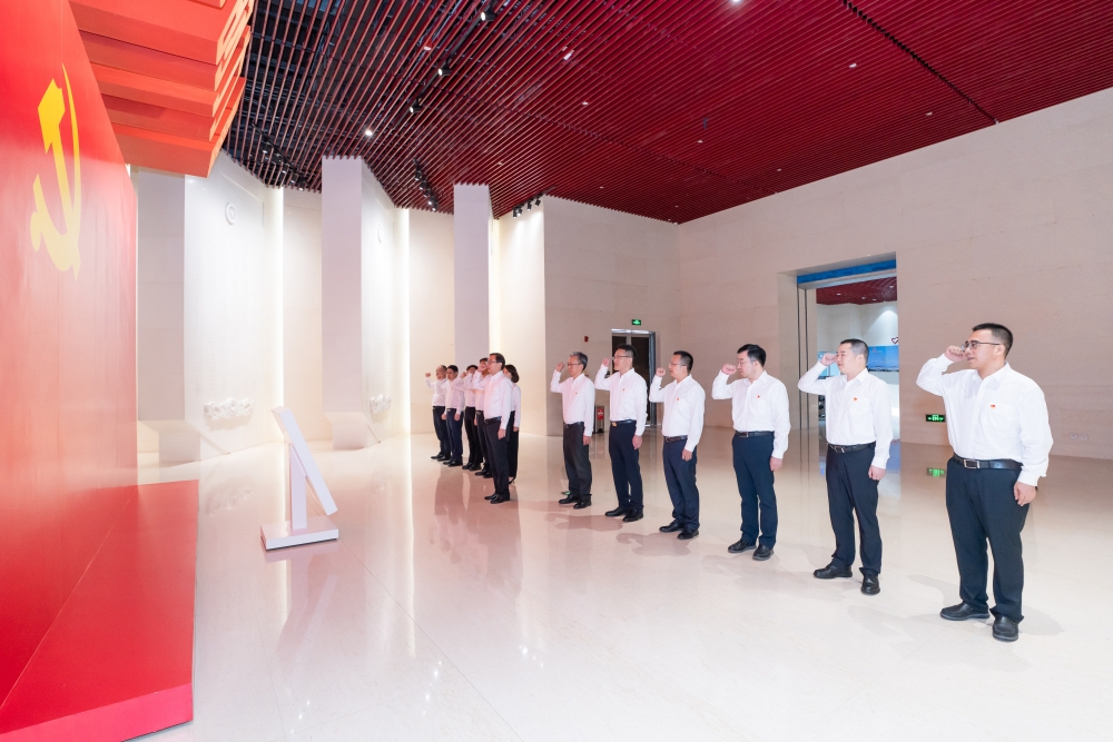 汲取信仰的力量 奮進新時代征程為全面貫徹落實黨的二十大精神,進一步鞏固深化學習貫徹習近平新時代中國特色社會主義思想主題教育成果,9月12日,蘇豪控股集團黨委書記周勇帶領新一屆黨委班子成員到雨花臺烈士陵園,追溯紅色歷史,緬懷革命先烈,重溫入黨誓詞,進一步激發奮進新征程、開創新局面的強大精神力量。在雨花臺烈士紀念館序廳,面向鮮紅的黨旗,新一屆黨委班子成員整齊列隊、高舉右拳、莊嚴宣誓,表達了不忘初心、牢記使命的責任擔當,許下了對黨忠誠、矢志奮斗的堅定承諾。隨后,黨委班子成員參觀了“信仰的力量——雨花英烈生平