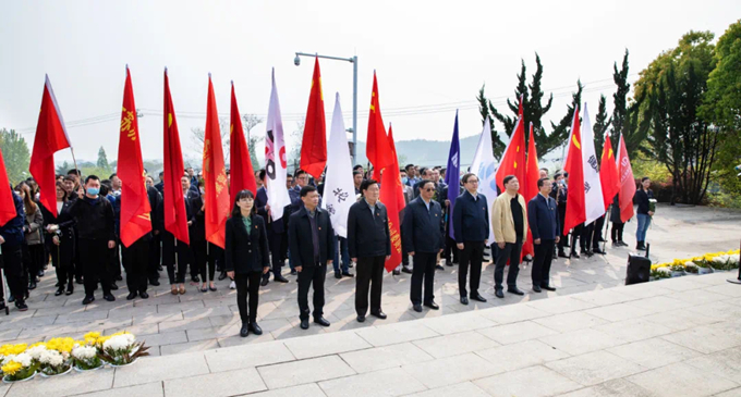 為緬懷革命先烈,傳承紅色基因,進一步推動黨史學習教育深入人心,4月13日上午,蘇豪控股集團黨委在江寧橫山烈士紀念碑開展憑吊活動。集團黨委班子成員、二級公司班子成員、支部書記、黨務工作者、黨員代表、團員代表、工會代表及總部黨員代表共179人參加。上午9時,活動正式開始,全體黨員整齊列隊革命烈士紀念碑前。兩名黨員代表將集團黨委敬獻的花籃擺放至紀念碑前,集團黨委書記、董事長王正喜代表全體黨員鄭重整理挽聯。全體黨員向為民族解放而英勇獻身的革命烈士三鞠躬,沉痛默哀。在莊嚴肅穆的紀念碑前,集團黨委副書記姚蓓帶領在場黨