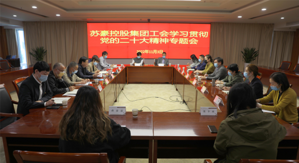 11月3日下午,蘇豪控股集團工會聯合會組織召開專題會議,集體學習黨的二十大精神,安排部署集團工會系統學習宣傳貫徹工作,動員集團各級工會立即動起來、深入學起來,迅速掀起學習宣傳貫徹黨的二十大精神熱潮。集團黨委副書記、工會聯合會主席姚蓓主持會議,各所屬工會主席、相關工會委員及集團總部部門代表參加會議。姚蓓指出,集團各級工會要把學習宣傳貫徹黨的二十大精神,作為當前和今后一個時期的首要政治任務,結合企業實際,作出專題部署,著力抓好落實,既要營造宣傳的“熱度”,也要確保學習的“精度”。要突出思想政治引領,逐層思想發